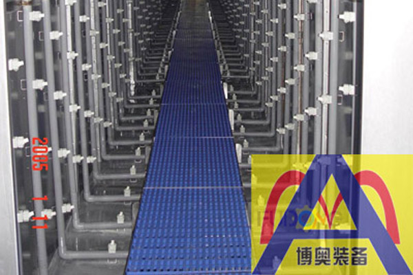 4、輸送鏈底部通過(guò)棚體開(kāi)口處設(shè)封氣排刷,防止水氣外逸。